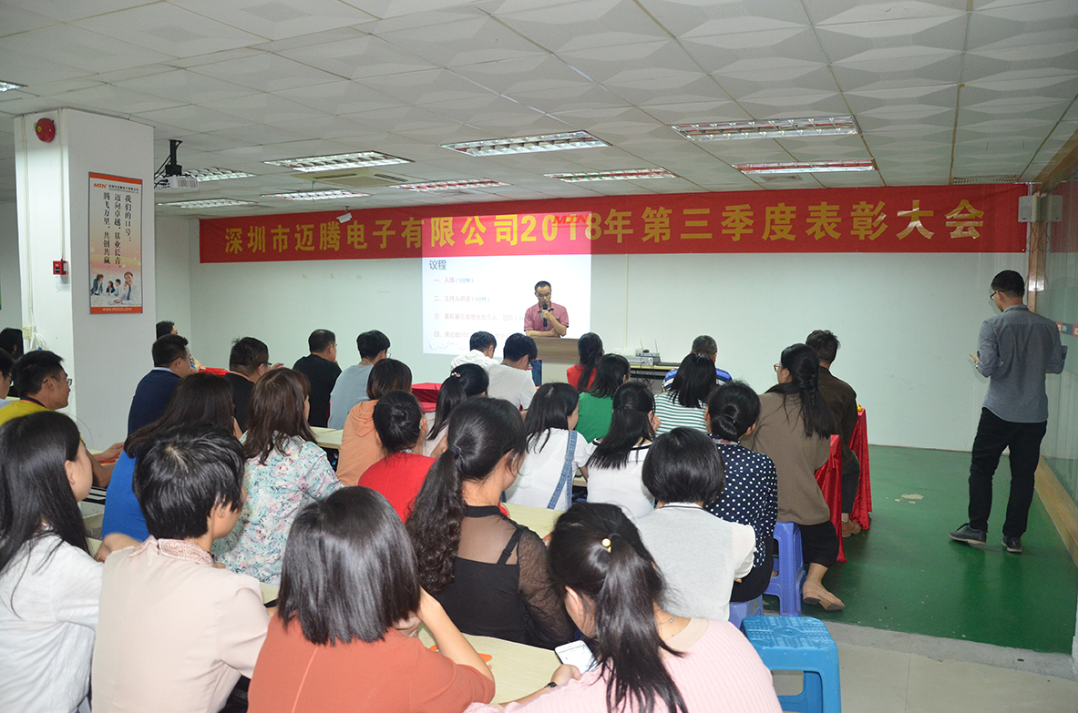 11月14日,世界杯官方网站入口电子2018年第三季度表彰大会在公司培训室隆重举行,深圳全体员工参加了此次会议。本次大会简要总结第三季度工作,并对优秀团队进行表彰,同时强调第四季度工作重点。